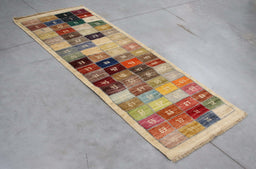 Ahgly30% OffFlash SaleIn stockOne-of-a-Kind Hand-Knotted Area Rug. 2x6 India Numbers Multicolored Wool Rectangular Rug EXACT SIZE: 2.4 x 6.4