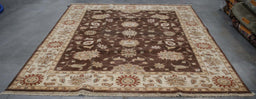 8x10 India Oushak Brown Ivory Wool Rectangular Rug