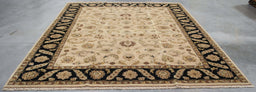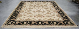 9x12 India Oushak Ivory Black Wool Rectangular Rug