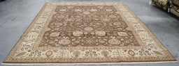 9x11 India Oushak Brown Ivory Wool Rectangular Rug