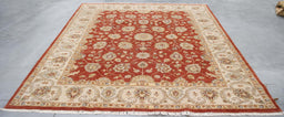 9x12 India Oushak Terracotta Ivory Wool Rectangular Rug