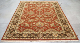 8x10 India Oushak Terracotta Ivory Wool Rectangular Rug