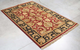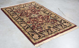 4x6 India Japiur Traditional Red Burgundy Black Wool Rectangular Rug