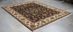 8x9 India Japiur Traditional Black Ivory Wool Rectangular Rug