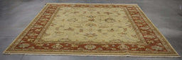 8x12 India Japiur Traditional Ivory Terrocotta Wool Rectangular Rug