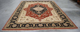 8x13 India Persian Heriz Terracotta Black Wool Rectangular Rug