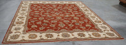 9x12 India Japiur Traditional Terracotta Ivory Wool Rectangular Rug