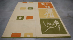 Ahgly30% OffFlash SaleIn stockOne-of-a-Kind Hand-Knotted Area Rug. 6x9 Nepal Asian Fusion Ivory Green Wool Rectangular Rug EXACT SIZE: 6 x 9