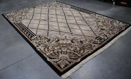 Ahgly30% OffFlash SaleIn stockOne-of-a-Kind Hand-Knotted Area Rug. 7x9 India Japiur Traditional Beige Black Wool Rectangular Rug EXACT SIZE: 7.10 x 9.10