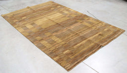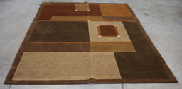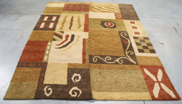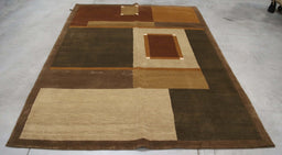 5x8 India Abstract Modern Contemporary Brown Gold Wool Rectangular Rug