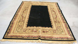 7x10 India Oushak Black Ivory Wool Rectangular Rug