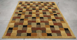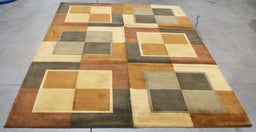 5x9 India Abstract Modern Contemporary Checkered Multicolored Brown Wool Rectangular Rug