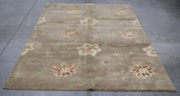 6x9 India Abstract Modern Contemporary Flowers Grey Brown Wool and Silk Rectangular Rug
