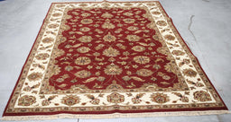 5x9 India Japiur Traditional Red Ivory Wool Rectangular Rug
