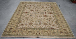 8x10 India Japiur Traditional Ivory Green Wool Rectangular Rug