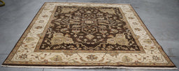 7x9 India Oushak Brown Ivory Wool Rectangular Rug