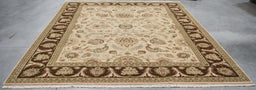 8x11 India Oushak Brown Ivory Wool Rectangular Rug