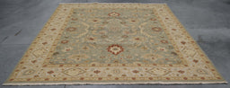 6x8 India Oushak Ivory Green Wool Rectangular Rug