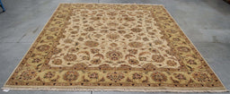 9x12 India Japiur Traditional Ivory Brown Wool Rectangular Rug