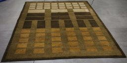Ahgly30% OffFlash SaleIn stockOne-of-a-Kind Hand-Knotted Area Rug. 6x9 India Abstract Modern Contemporary Green Brown Wool Rectangular Rug EXACT SIZE: 6.1 x 8.5