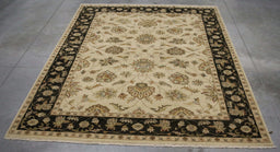 9x12 India Oushak Ivory Black Wool Rectangular Rug