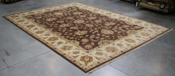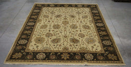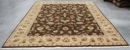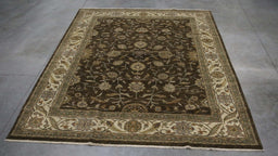 9x11 India Japiur Traditional Brown Ivory Wool Rectangular Rug
