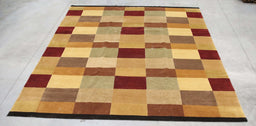 Ahgly30% OffFlash SaleIn stockOne-of-a-Kind Hand-Knotted Area Rug. 9x12B India Abstract Modern Contemporary Checkered Multicolored Brown Wool Rectangular Rug EXACT SIZE: 9.2 x 12