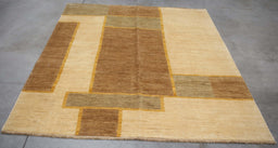 Ahgly30% OffFlash SaleIn stockOne-of-a-Kind Hand-Knotted Area Rug. 6x7 Pakistan Abstract Modern Contemporary Ivory Brown Wool Rectangular Rug EXACT SIZE: 5.8 x 7.11