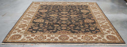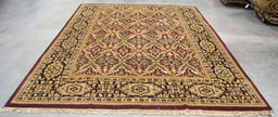 8x9 India Japiur Traditional Black Ivory Wool Rectangular Rug