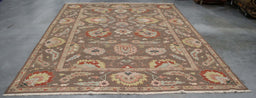 9x12 India Oushak Brown Gold Wool Rectangular Rug