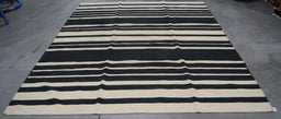 7x10 India Striped Flat Weave White Black Wool Rectangular Rug