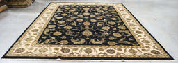 6x9 India Japiur Traditional Black Ivory Wool Rectangular Rug