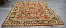 9x12 India Japiur Traditional Terracotta Brown Wool Rectangular Rug