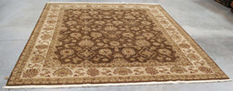 8x10 India Oushak Brown Ivory Wool Rectangular Rug