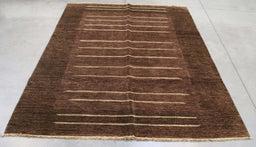 6x8 Pakistan Abstract Modern Contemporary Solid Brown Wool Rectangular Rug