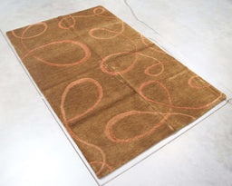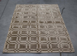Ahgly30% OffFlash SaleIn stockOne-of-a-Kind Hand-Knotted Area Rug. 4x6 India Abstract Modern Contemporary Brown Wool and Silk Rectangular Rug EXACT SIZE: 3.8 x 5.7
