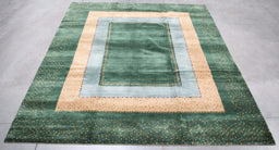 Ahgly30% OffFlash SaleIn stockOne-of-a-Kind Hand-Knotted Area Rug. 6x9 India Abstract Modern Contemporary Green Grey Wool Rectangular Rug EXACT SIZE:6.3 x 9.1