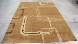 6x8 India Abstract Modern Contemporary Brown Wool and Silk Rectangular Rug
