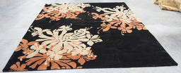 4x6 India Abstract Modern Contemporary Brown Black Wool Rectangular Rug