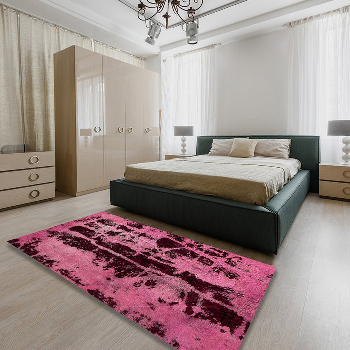 Machine Washable Abstract Burgundy Red Rug, wshabs5630