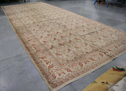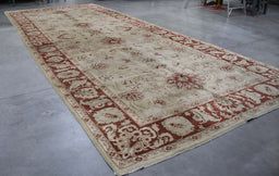 10x23 Pakistan Oushak Ivory Red Wool Rectangular Rug