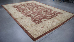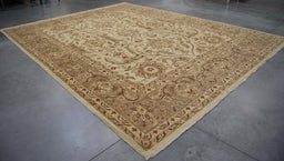 12x15 India Oushak Brown Ivory Wool Rectangular Rug