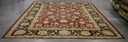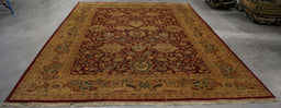 10x14 India Japiur Traditional Red Burgundy Black Wool Rectangular Rug