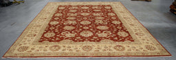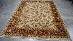 10x14 India Oushak Ivory Red Wool Rectangular Rug