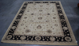 10x14 Pakistan Oushak Ivory Black Wool Rectangular Rug