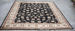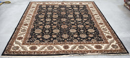 10x14 India Japiur Traditional Black Ivory Wool and Silk Rectangular Rug