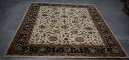10x14 India Japiur Traditional Ivory Black Wool Rectangular Rug