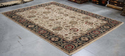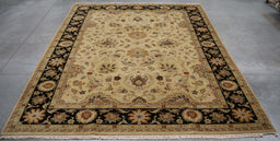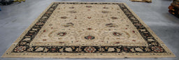 10x14 India Oushak Ivory Black Wool Rectangular Rug