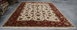 10x14 India Jaipur Ivory Red Wool Rectangular Rug