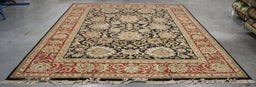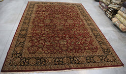 10x14 India Japiur Traditional Black Red Wool Rectangular Rug
